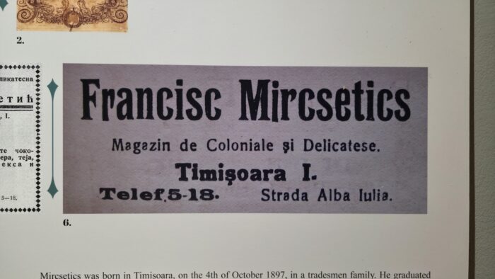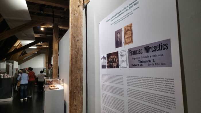 Expoziția vorbește, printre altele, despre familiile Bohn și Muschong, de destinul cărora se leagă cărămizile de Jimbolia și Lugoj, Jakob Muschong, „Regele Cărămizilor” fiind și o persoană care s-a implicat la un moment dat în revitalizarea stațiunii Buziaș, pe care a achiziționat-o cu 900 000 de coroane. Aflăm despre viața lui Francisc Branislav Mircsetics, născut într-o familie de comercianți, care a absolvit la Berlin un curs de decorator de vitrine, iar mai apoi și-a deschis la Timișoara o afacere cu produse coloniale și delicatese, și a participat frecvent la concursurile și expozițiile de vitrine. Sau despre familia Kimmel, de numele căreia se leagă construcția uneia dintre (în opinia mea) cele mai frumoase edificii din oraș, Vila Kimmel de pe bd. C.D. Loga, cu elemente din arhitectura clasicistă franceză a sec. al XVIII-lea, care din 1992 este sediul Institutului Francez din Timișoara.