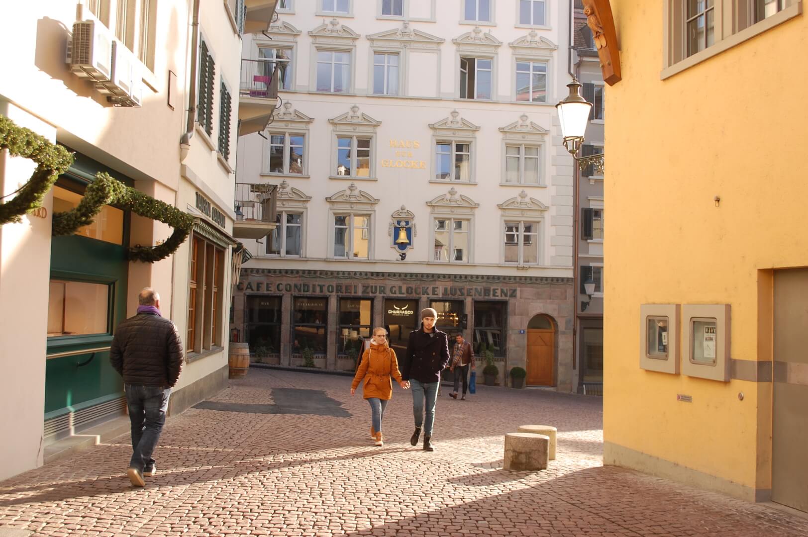O altă stradă din Zürich, de data aceasta una pietonală. Același decor simplu, dar de mare efect.