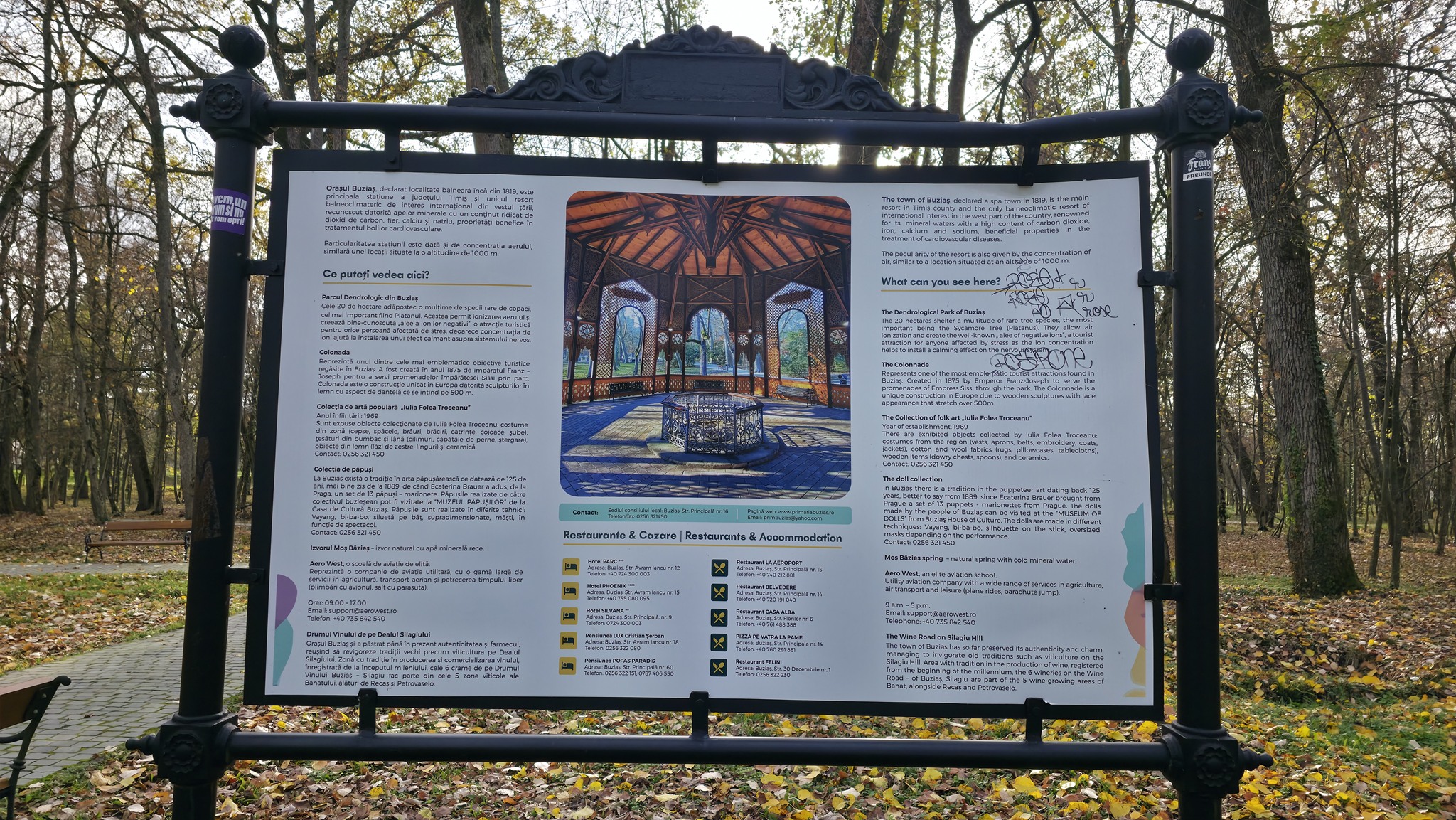 Am fost acolo ultima oară pe la sfârșitul anului trecut. O plimbare prin parcul de la Buziaș este întotdeauna o idee bună, indiferent de anotimp: aerul este foarte bun. Acum, noi am mers acolo târziu în toamnă, era noiembrie deja, copacii mai aveau puține frunze, veverițe nu am văzut deloc, dar ne-am umplut plămânii de aer bun de Buziaș.